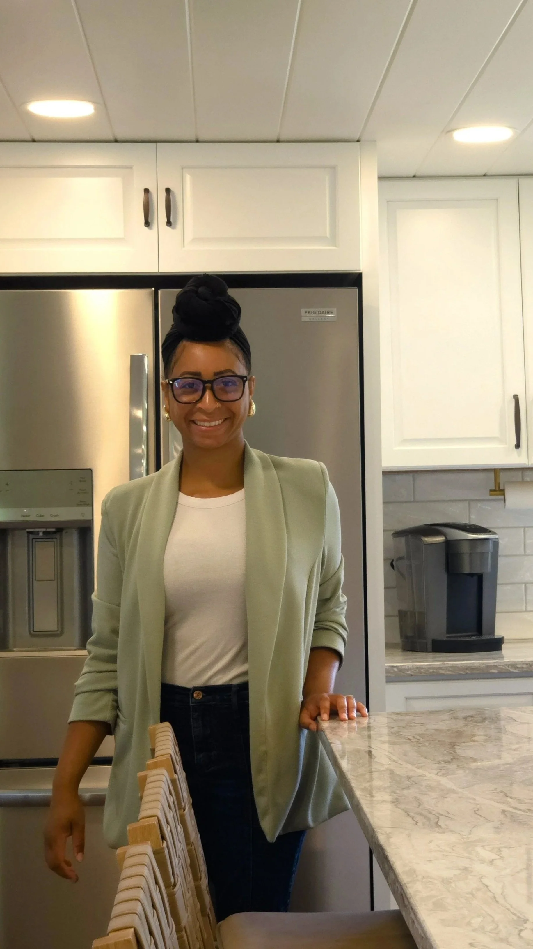 The island was designed to anchor the room—providing additional prep space, casual seating, and a natural place for gathering. Material selections were chosen to balance durability with warmth, creating a space that feels both practical and inviting.